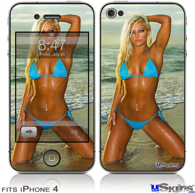 iPhone 4 Decal Style Vinyl Skin - Whitney Jene Blue Bikini (DOES NOT fit newer iPhone 4S)