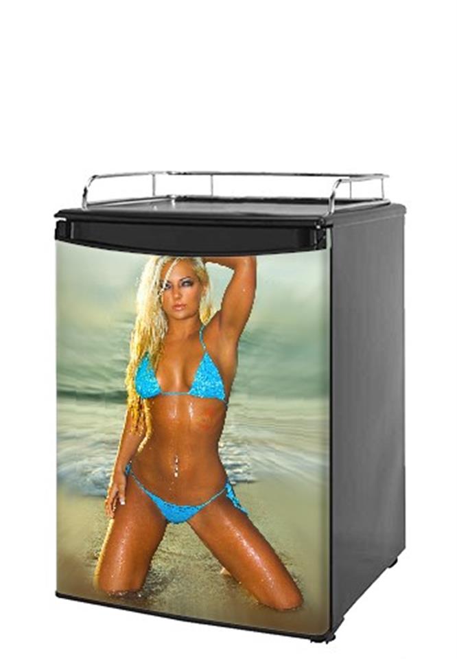 Kegerator Skin - Whitney Jene Blue Bikini (fits medium sized dorm fridge and kegerators)