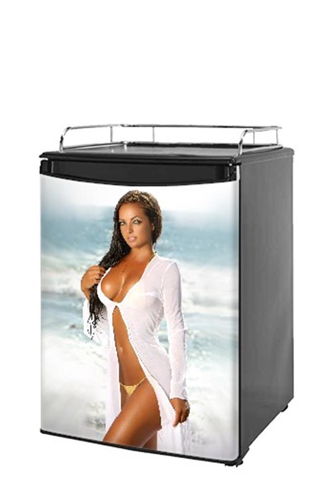 Kegerator Skin - Whitney Jene Yellow Bikini (fits medium sized dorm fridge and kegerators)
