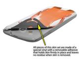 uSkins™ are self adhering vinyl skins that help prevent scratches and look great doing it. Unlike bulky silicon, plastic or metal cases and faceplates, uSkins are designed to be thin and very tough. uSkins are a composite of two layers of commercial grade materials. The bottom layer is a soft, flexible vinyl with a special removable adhesive that is easily positioned, applied without air bubbles, and effortlessly removed without leaving a sticky residue. Next we print the bottom layer with UV protected, fade resistant inks that deliver superb photo quality designs in vibrant colors. Finally we bond a professional grade laminate over the entire skin adding a glossy protective finish.