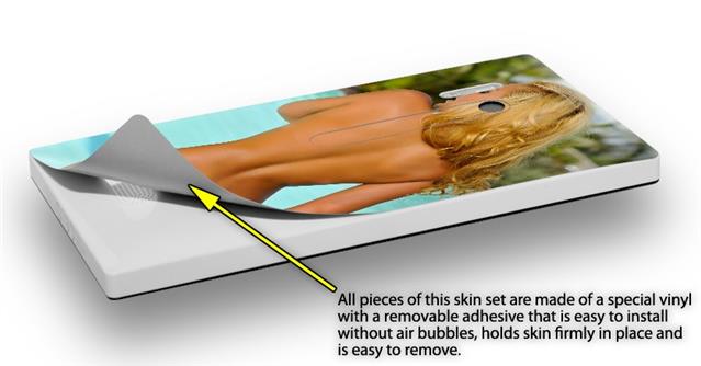 uSkins™ are self adhering vinyl skins that help prevent scratches and look great doing it. Unlike bulky silicon, plastic or metal cases and faceplates, uSkins are designed to be thin and very tough. uSkins are a composite of two layers of commercial grade materials. The bottom layer is a soft, flexible vinyl with a special removable adhesive that is easily positioned, applied without air bubbles, and effortlessly removed without leaving a sticky residue. Next we print the bottom layer with UV protected, fade resistant inks that deliver superb photo quality designs in vibrant colors. Finally we bond a professional grade laminate over the entire skin adding a glossy protective finish.