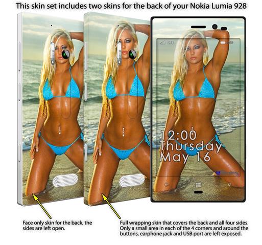 • Decal style vinyl skin covers front, back and side of Nokia Lumia 928 phone.