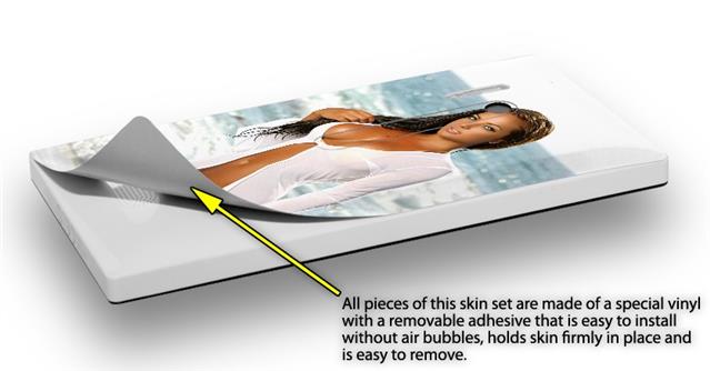 uSkins™ are self adhering vinyl skins that help prevent scratches and look great doing it. Unlike bulky silicon, plastic or metal cases and faceplates, uSkins are designed to be thin and very tough. uSkins are a composite of two layers of commercial grade materials. The bottom layer is a soft, flexible vinyl with a special removable adhesive that is easily positioned, applied without air bubbles, and effortlessly removed without leaving a sticky residue. Next we print the bottom layer with UV protected, fade resistant inks that deliver superb photo quality designs in vibrant colors. Finally we bond a professional grade laminate over the entire skin adding a glossy protective finish.