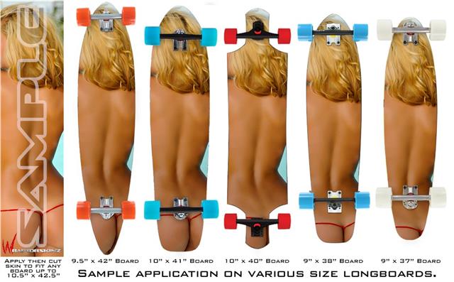 Our longboard skins are made so that one size fits boards up to 10” wide x 42” long. This means after applying the skin it you will trimming to fit you’re the shape of your board with a sharp utility knife.